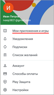 3. Откройте пункт «Мои приложения и игры».