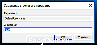 5. Откройте параметр DefaultUserName, в поле «Значение» напишите имя пользователя под которым вы хотите заходить в систему автоматически и нажмите «ОК».